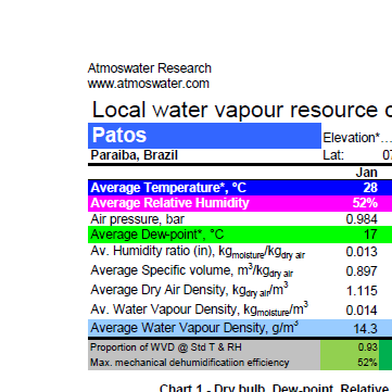 Water-from-Air Resource chart for Patos, Paraiba, Brazil