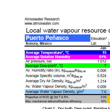 Water-from-Air Resource chart for Puerto Peñasco, Sonora, México.