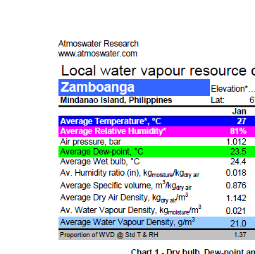 Water-from-Air Resource chart for Zamboanga, Philippines.
