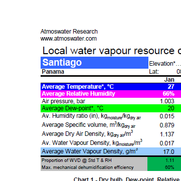 Water-from-Air Resource chart for Santiago, Panama.