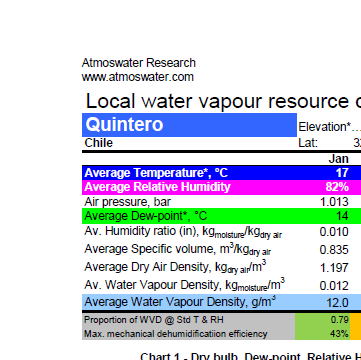 Water-from-Air Resource chart for Quintero, Chile.
